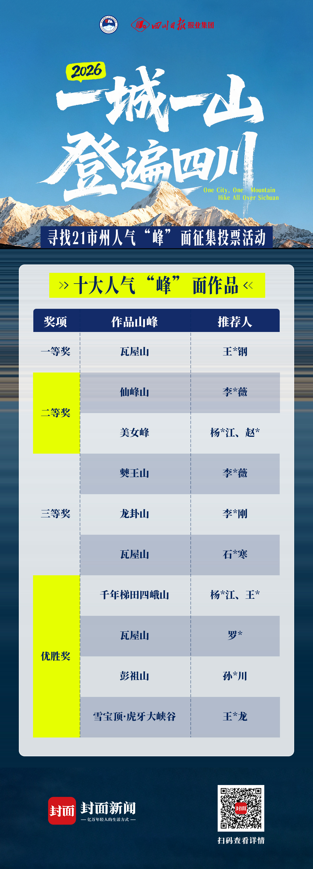 历时近40天,2026“一城一山·登遍四川”——寻找21市州人气“峰”面征集投票活动于4月20日圆满收官。